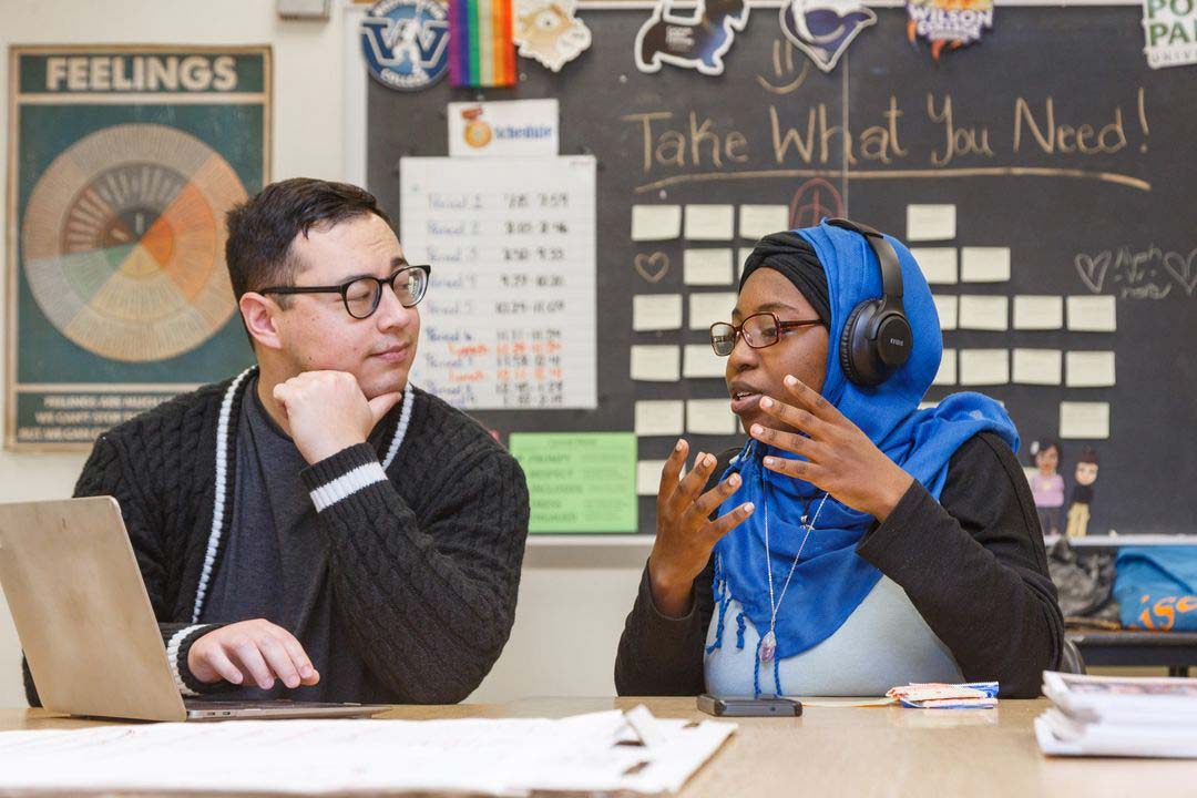 Rob Park, a coach in The Pittsburgh Promise initiative to provide post-secondary exploration and planning for high school students, works with a senior at Cheswick. Pittsburgh Promise officials recognize that the exponential growth in programming and fundraising demonstrates that supporting organization status with The Pittsburgh Foundation is no longer needed.